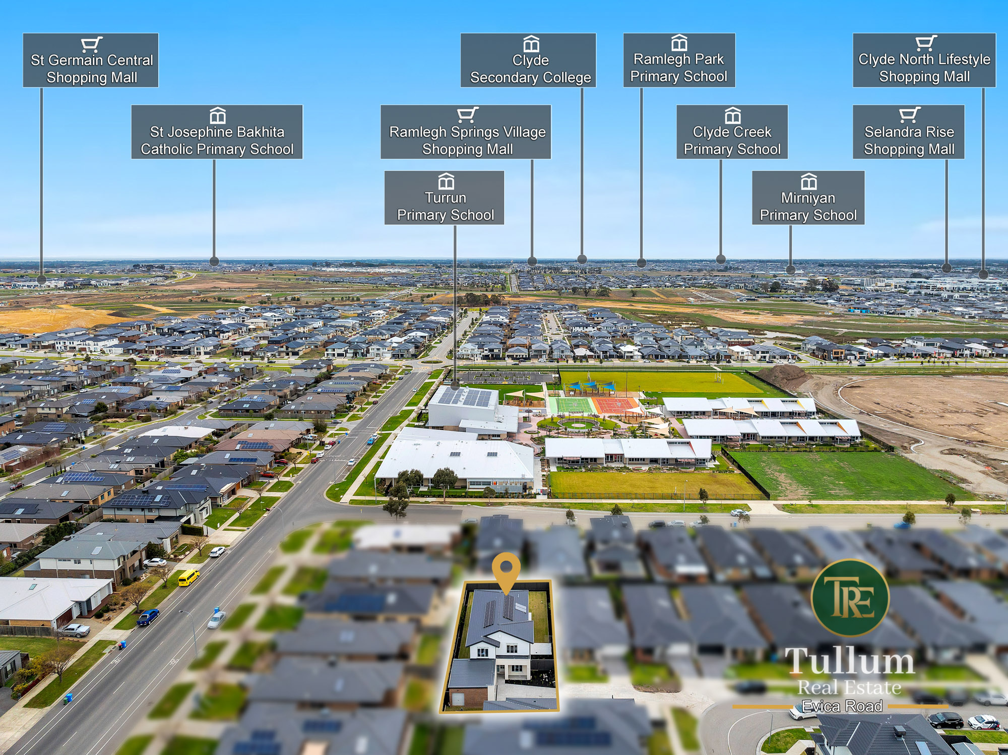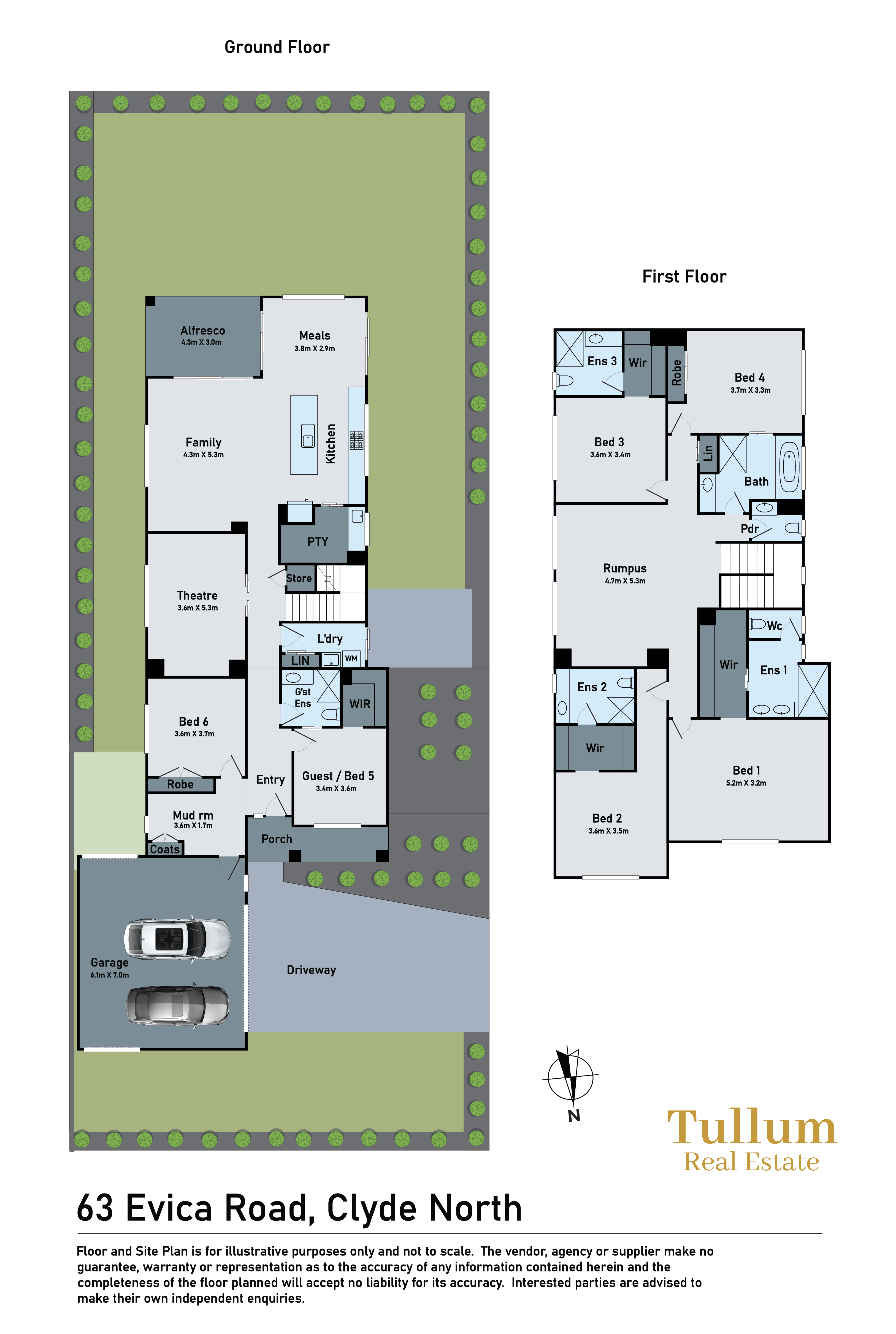 63 Evica Road Clyde North VIC 3978 Aspen on Clyde: Tullum Real Estate present you this exquisite residence, where timeless elegance meets modern sophistication. Perfectly situated in the most coveted location, this home offers prestige, unmatched privacy, space and effortless access to the finest schools, shopping, dining, and entertainment the Clyde North has to offer. Step inside to discover expansive living spaces bathed in natural light, soaring ceilings, and designer finishes throughout. The gourmet kitchen is a chef's dream, featuring top-of-the-line appliances, custom cabinetry, a spacious island ideal for entertaining and butler's pantry. Each bedroom is a serene retreat, boasting 5 ensuite bathrooms and walk-in closets. Outside, indulge in a private oasis with a huge backyard that has a potential to set up a pool or tennis court for sports lovers, alfresco area, and manicured gardens - all designed for ultimate relaxation and luxury living. This is more than a home; it's a lifestyle statement. This unparalleled residence sits at a short walk from the new Turrun Primary School, playground with basketball court, and situated within short distance from cafe, local shops, Grayling Primary School, Hillcrest Christian College, Rivercrest Christian College, Wulerrp Secondary College, Kumon Clyde North Education Centre, and much more, this home offers a lifestyle of unprecedented convenience. Key Features of the Property: Land- 730 Sqm Approx. - 6 Bedrooms, 5 Bath, and 2.5 Car Garage - Guest bedroom downstairs Walk in Robe and full ensuite with tiles Upto ceiling - Another bedroom downstairs with built in robe - Master bedroom upstairs comes walk in robe and full ensuite with double vanities - Remaining 3 bedrooms upstairs comes with WIRs and private ensuites - 3 Separate Living Areas: Versatile spaces for entertainment and family time including Theatre, Family area and Rumpus - Spacious Rumpus Room - Designed for Fun & Flexibility: Perfectly suited for family living and entertaining, the rumpus room upstairs offers a generous, light-filled space where relaxation and recreation meet. - Open Plan Kitchen with Meals and Family Area - A Premium Kitchen Crafted for Culinary Excellence: Featuring premium stone benchtops, splash back glass, 900mm appliances, and a butlers pantry - Thoughtfully Designed Mud Room for Everyday Elegance - Premium quality floor boards to the hallway and family/meals area. - Premium quality carpet in bedrooms, Theatre and rumpus - Alfresco - Step into the ultimate outdoor entertaining experience with a beautifully designed alfresco area that blends comfort, style, and functionality. - Contemporary Square Set Finishes - Clean Lines, Modern Appeal This home showcases premium square set finishes throughout, offering a clean, seamless look that enhances its modern architectural style. - Lush Backyard with Natural Grass - A Green Sanctuary Step outside into a beautifully landscaped backyard featuring a generous expanse of natural grass - perfect for families, pets, and outdoor entertaining. Other Features: Heating: Yes Refrigerative Cooling: Yes Downlights: Yes Dishwasher: Yes - Chattels: All Fittings and Fixtures as Inspected as Permanent Nature Centrally located, most ideal location. Within a short distance to: - Local shops and town centre - Cafes and restaurants - Public transport - Turrun Primary School - Wulerrp Secondary College - Hillcrest Christian College - Rivercrest Christian College - Grayling Primary School - Eden Rise Village - Community Centre - Kids Playgrounds - Aspen Basketball Court - Reserves - Swimming School -Cranbourne and Berwick Train Station HOUSE LIKE NO OTHER! MUST SEE! Contact Jugraj Sandhu on 0470 281 705 for more information. Disclaimer: Every precaution has been taken to establish the accuracy of the above information, however, it does not constitute any representation by the vendor, agent or agency. Our photos, floor plans and site plans are for representational purposes only. We accept no liability for the accuracy or details in our photos, floor plans or site plans. Please note the status of and or the information on the property may change at any time. PHOTO ID REQUIRED AT OPEN FOR INSPECTION Please see the below link for an up-to-date copy of the Due Diligence Check List: http://www.consumer.vic.gov.au/duediligencechecklist