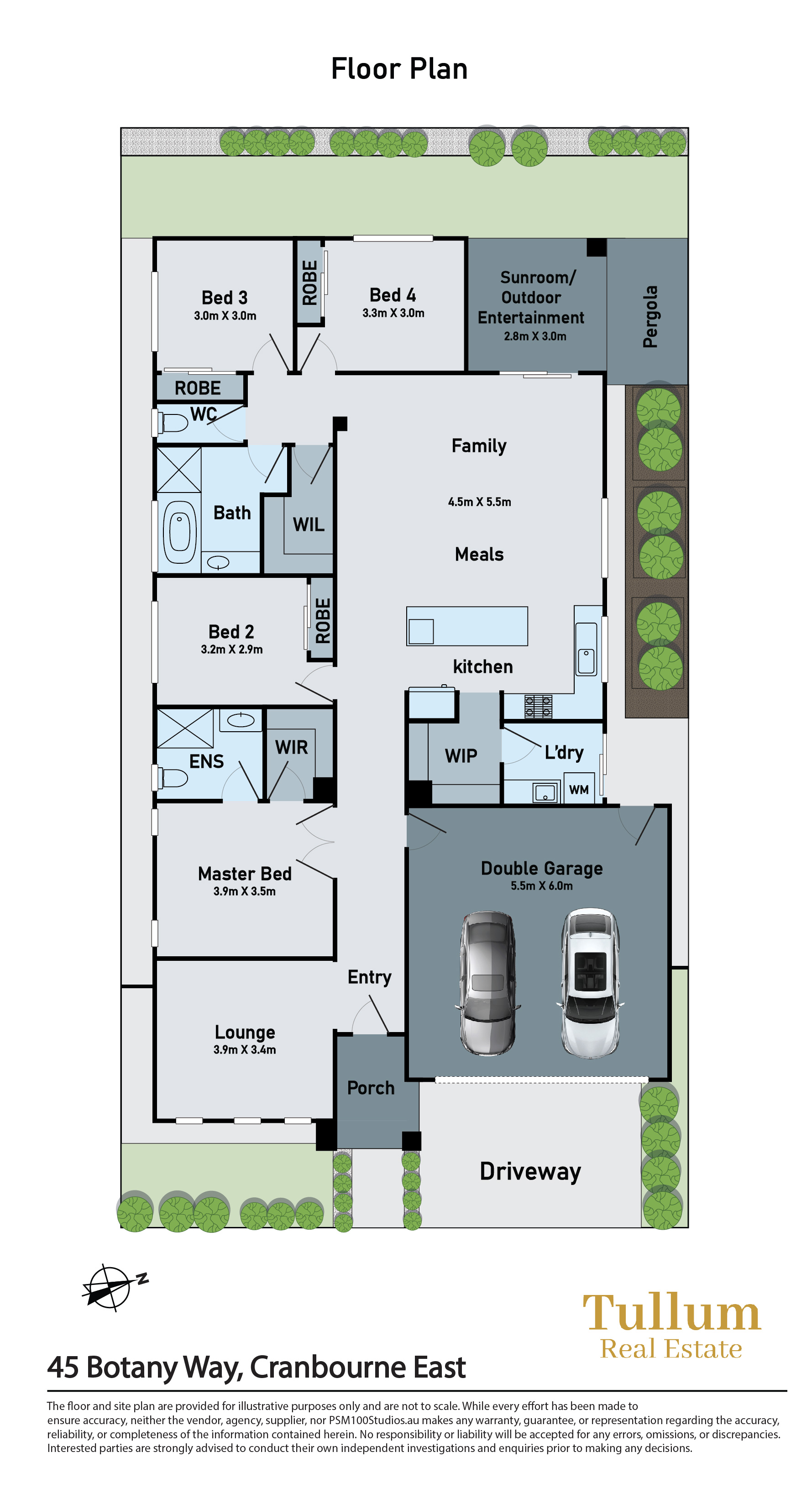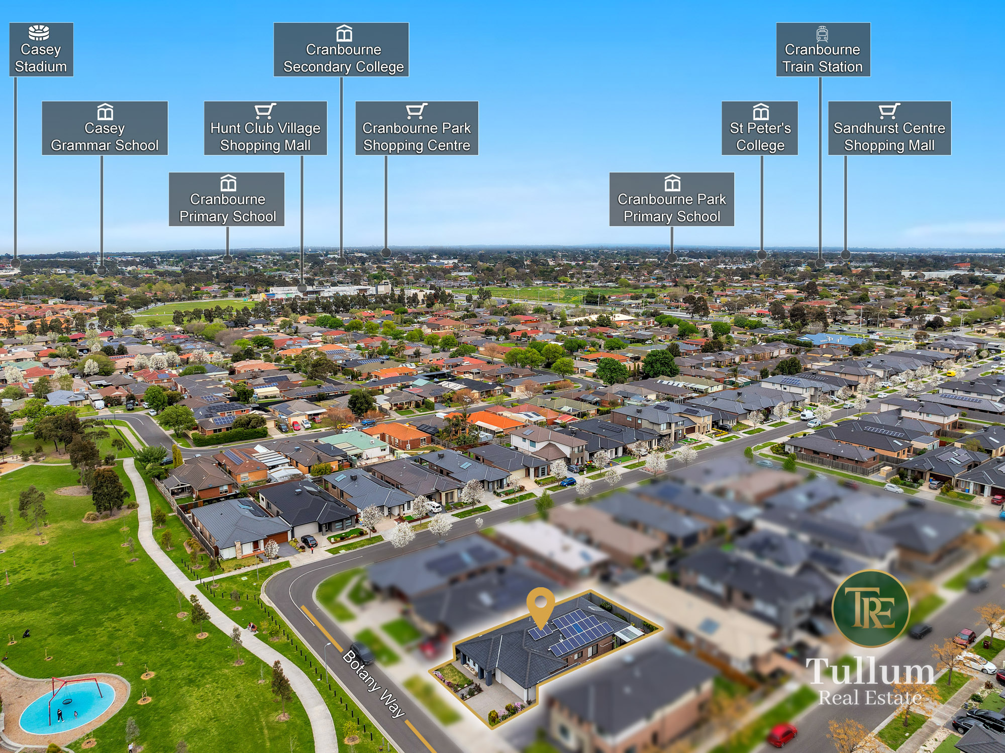 45 Botany Way Cranbourne East VIC 3977 EAST ESTATE, CRANBOURNE EAST: Tullum Real Estate welcome you to your dream home, perfectly positioned directly opposite a beautiful park, offering tranquil views and room for the kids to roam just steps from your front door. Boasting 4 spacious bedrooms, 2 modern bathrooms, and 2 generous living areas, this thoughtfully designed home delivers the ideal blend of comfort, functionality, and lifestyle. Whether you're a growing family or love to entertain, this property ticks every box. Set on a low-maintenance block in a peaceful, family-friendly location, this home offers the lifestyle you've been searching for - with playgrounds, walking trails, and nature right at your doorstep. Key Features: - 4 Bed, 2 Bath, 2 Living areas and 2 Car Garage - Master bedroom with spacious walk in robe and full ensuite - Remianing bedrooms come with built in robes - Main stylish bathroom with a bath tub - Common Toilet - Two separate living areas - perfect for family living and entertaining - Lounge at the front makes it a convenient place for hosting guests and enjoying peaceful weekends - Open Plan Kitchen with Meals and Family Area - Modern Kitchen: Featuring plenty of bench space, 900mm stainless steel appliances, and a big walk in pantry - Fully enclosed Alfresco for outdoor entertainment - Double lock-up garage with internal access - Refrigerated cooling and heating - 6.6 Kw solar - Porcelain tiles to hallway and family/meals area - Carpet to the bedrooms - Parkfront position: uninterrupted green views, ultimate privacy - Spacious outdoor entertainment area: ideal for BBQs, gatherings, or relaxing evenings - Extended pergola with decking - 5 CCTV cameras - Security System - Exposed aggregate driveway Within a short distance to: - Hunt Club Shopping Centre - Cranbourne East Medical Centre - Springhill Shopping Centre - Cranbourne East Primary School - Cranbourne East Secondary College - Casey Grammar School - Cranbourne Library - Casey Field Grounds - Community Centre - Cranbourne Indoor Swimming Pool - Cranbourne Park Shopping Centre - Cranbourne Train Station - Cranbourne Community Hospital - Monash Health Don't miss the opportunity to make this exceptional home yours! Contact Jugraj Sandhu on 0470281705 for further information. Disclaimer: Every precaution has been taken to establish the accuracy of the above information, however, it does not constitute any representation by the vendor, agent or agency. Our photos, floor plans and site plans are for representational purposes only. We accept no liability for the accuracy or details in our photos, floor plans or site plans. Please note the status of and or the information on the property may change at any time. PHOTO ID REQUIRED AT OPEN FOR INSPECTION Please see the below link for an up-to-date copy of the Due Diligence Check List: http://www.consumer.vic.gov.au/duediligencechecklist