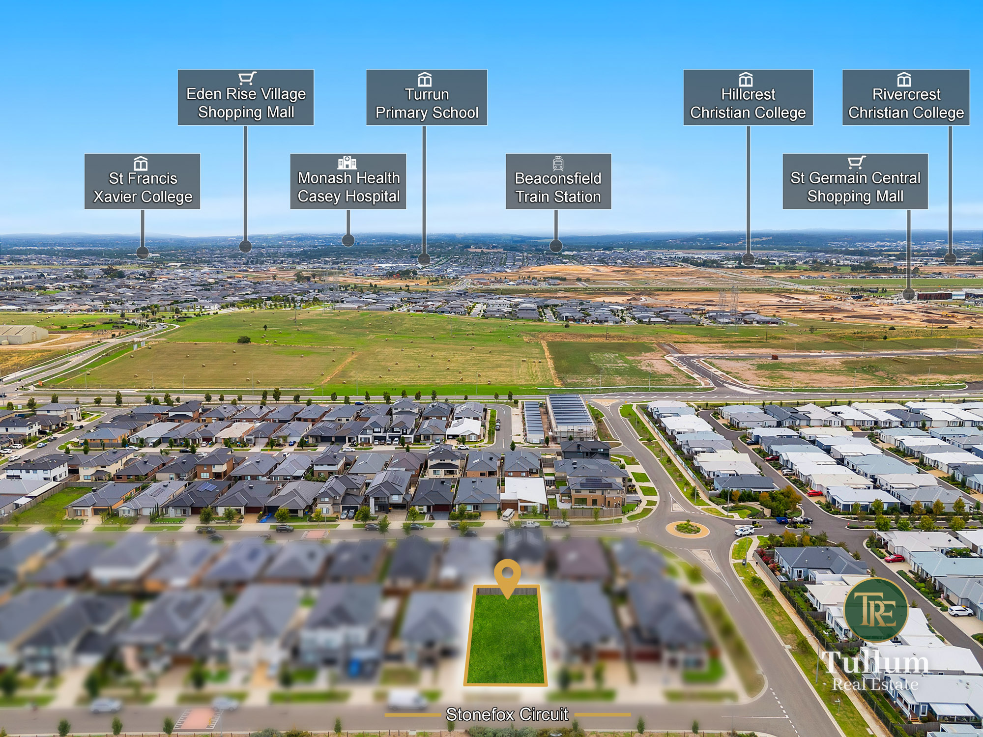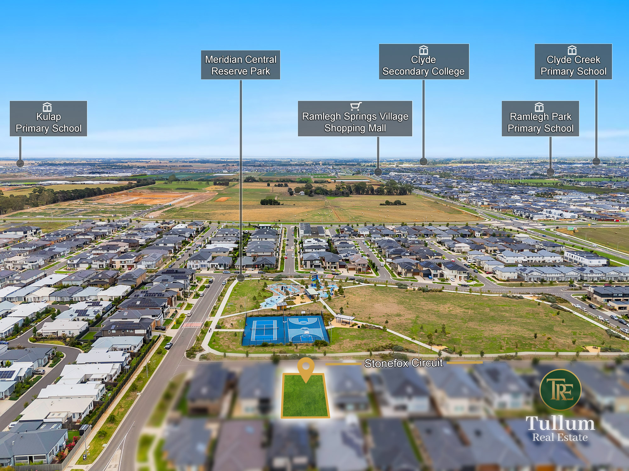 47 Stonefox Circuit Clyde North VIC 3978 Meridian Central Estate, Clyde North: Tullum Real Estate proudly present you an exceptional opportunity to secure a premium 448m² (approx.) titled block in a beautifully established and highly desirable neighbourhood. Perfectly positioned directly opposite landscaped parkland, kids playground, basketball and tennis courts, this superb allotment offers a lifestyle of space, recreation and convenience rarely found. Imagine stepping outside your future home to open green spaces, weekend games with family and friends, and a vibrant community atmosphere. Located just moments from the display village and quality new homes, the block provides the perfect canvas to design and build a residence that suits your lifestyle. Whether you're building your dream family home or a high-quality investment, this parkside opportunity delivers the ideal blend of location, lifestyle and long-term value. Size- 448 Sqm Approx. Dimensions- 14m*32m approx. Within a short distance to: - Ramlegh Springs Village - St Germain Central Shopping Centre - Cafes and restaurants - Bus stop - St Josephine Bakhita Catholic Primary School - Wulerrp Secondary College - Topirum Primary School - Clyde Grammar School - Hillcrest Christian College - Rivercrest Christian College -King Swim Pool Clyde North. Opportunities in such a prime parkside position are limited - secure it today. Enquire today and experience the lifestyle this remarkable land has to offer. Disclaimer: Every precaution has been taken to establish the accuracy of the above information, however, it does not constitute any representation by the vendor, agent or agency. Our photos and site plans are for representational purposes only. We accept no liability for the accuracy or details in our photos, or site plans. Please note the status of and or the information on the property may change at any time. PHOTO ID REQUIRED AT OPEN FOR INSPECTION Please see the below link for an up-to-date copy of the Due Diligence Check List: http://www.consumer.vic.gov.au/duediligencechecklist